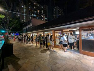 世界一の売上を叩き出すと言われるワイキキ店は、2025年の今もなお、ブロックを半周するほどの大行列を作っていた。