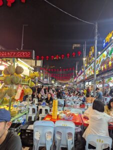 タワーを見上げるエリート層も、バックパッカーも、同じ屋台でサテ(串焼き)を頬張り、汗を流しながらラクサを啜っています。